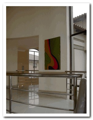 The design was based on a wave pattern and each panel was painted to match the room's decor.