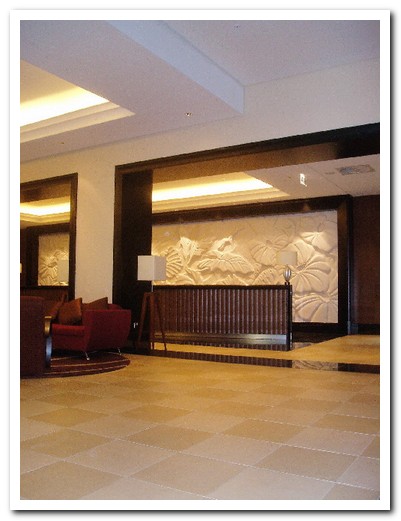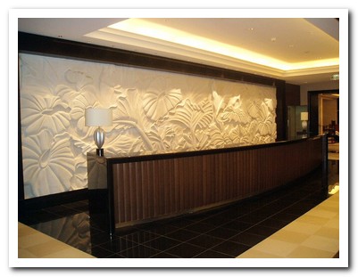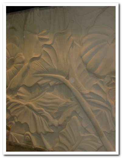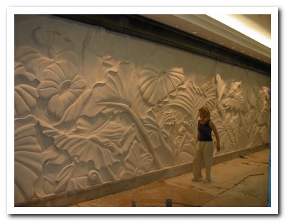 areas of the work. After approval from the interior designer, she hand sculpted the work using polyurethane rigid